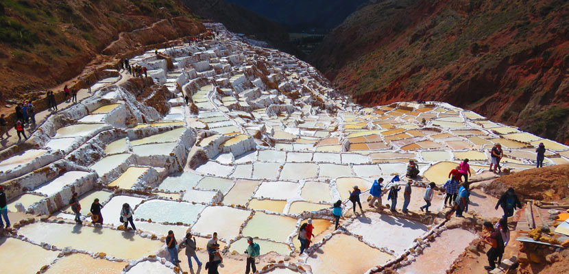 The tour starts with pick-up at your hotel between 8:30 and 9:00 am. then we will depart by bus to the Sacred Valley of the Incas, on our way to Moray (3200 m.), we will pass the bucolic field, where you can find the small family farms of corn. Then we will have time to explore the Inca ruins of Moray, an agricultural laboratory that includes a set of concentric circular terraces, in each terrace there are different microclimates, each one representing an altitude difference of 1000 M. under normal growing conditions. The guide will give us details about the construction, design and use of the site.